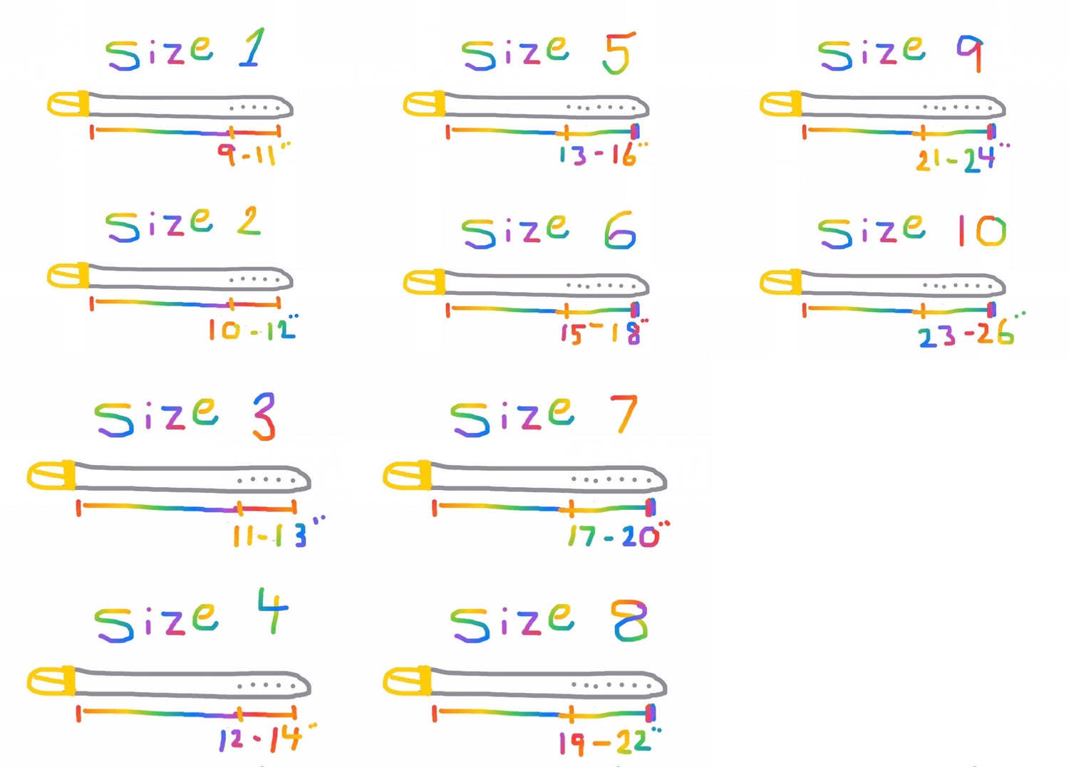 Lay your current collar flat and measure below the buckle to the hole you use. My collars sizes are measured from below (not including the buckle) to the holes on the collar. Example size 1 has holes at 9", 9.5", 10", 10.5", 11'. Sizes 5 and above have 7 holes,for adjustment.
