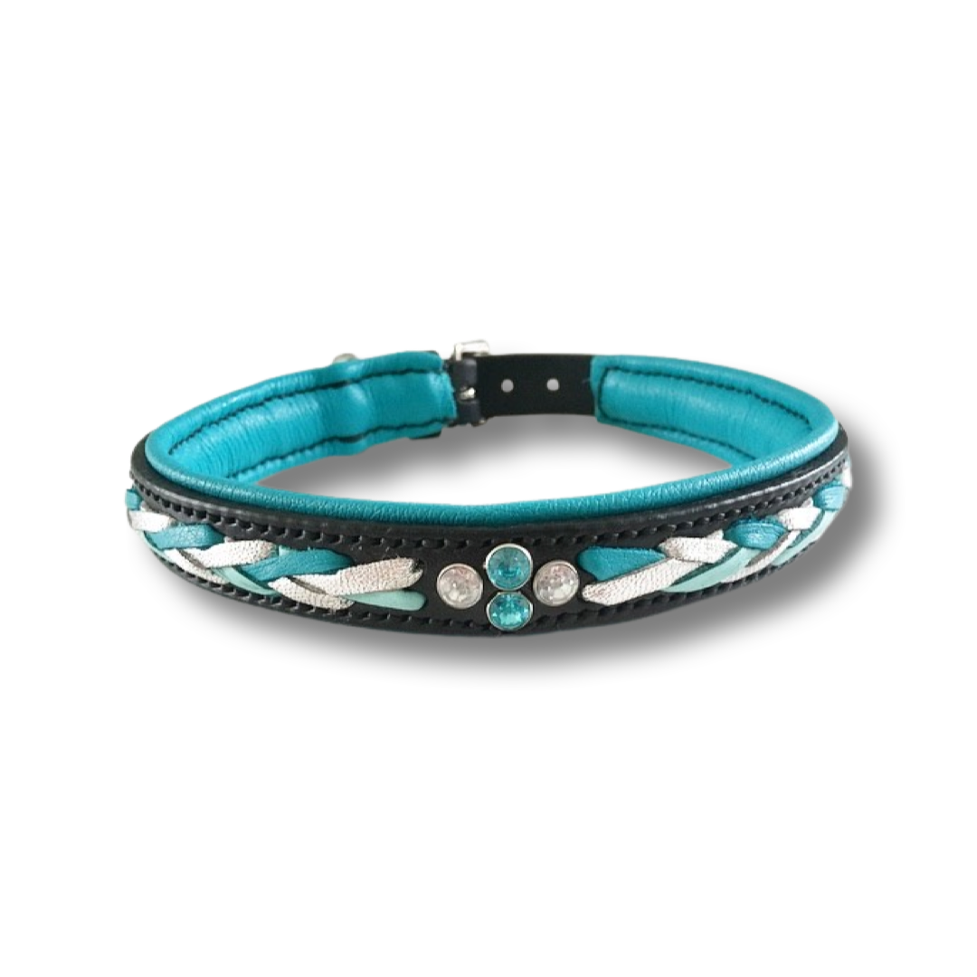 Decorated with Aqua/Silver & Robbin egg plaited detail. with an Aqua and Clear Stone centrepiece.