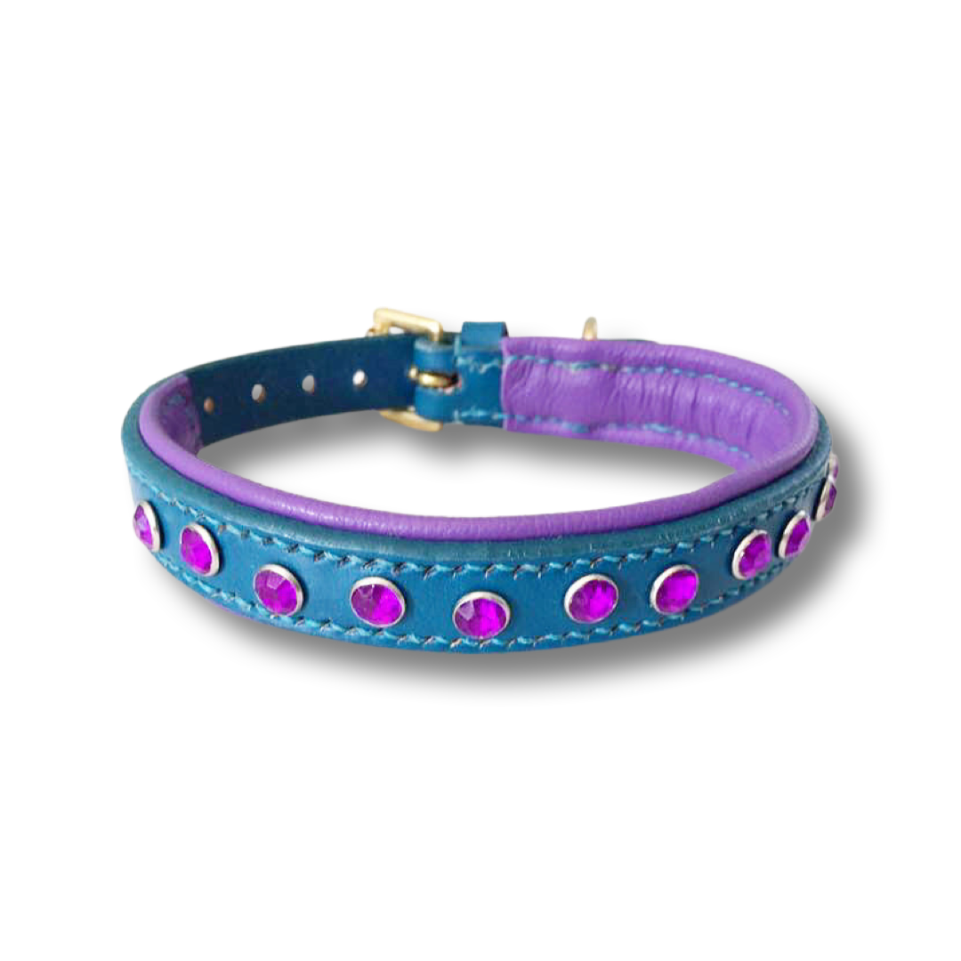 Teal leather-Padded in purple hide