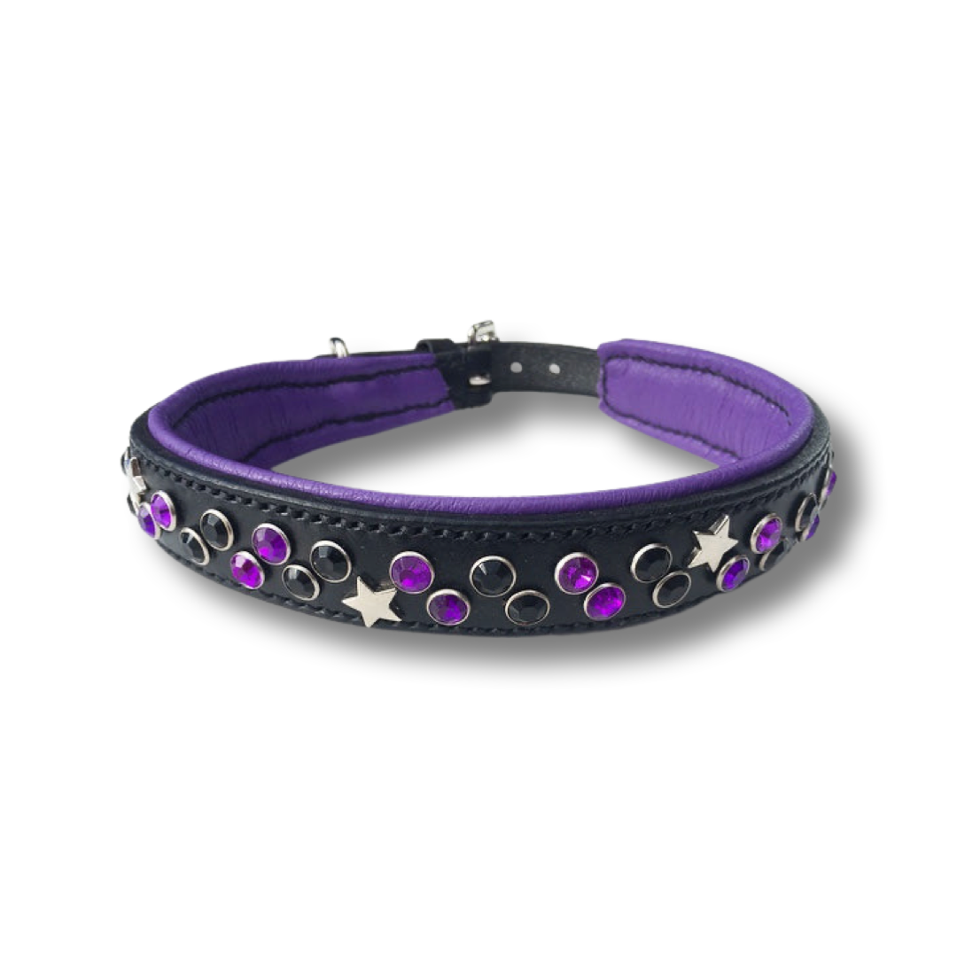 Decorated with double row of purple and black stones interrupted with silver stars