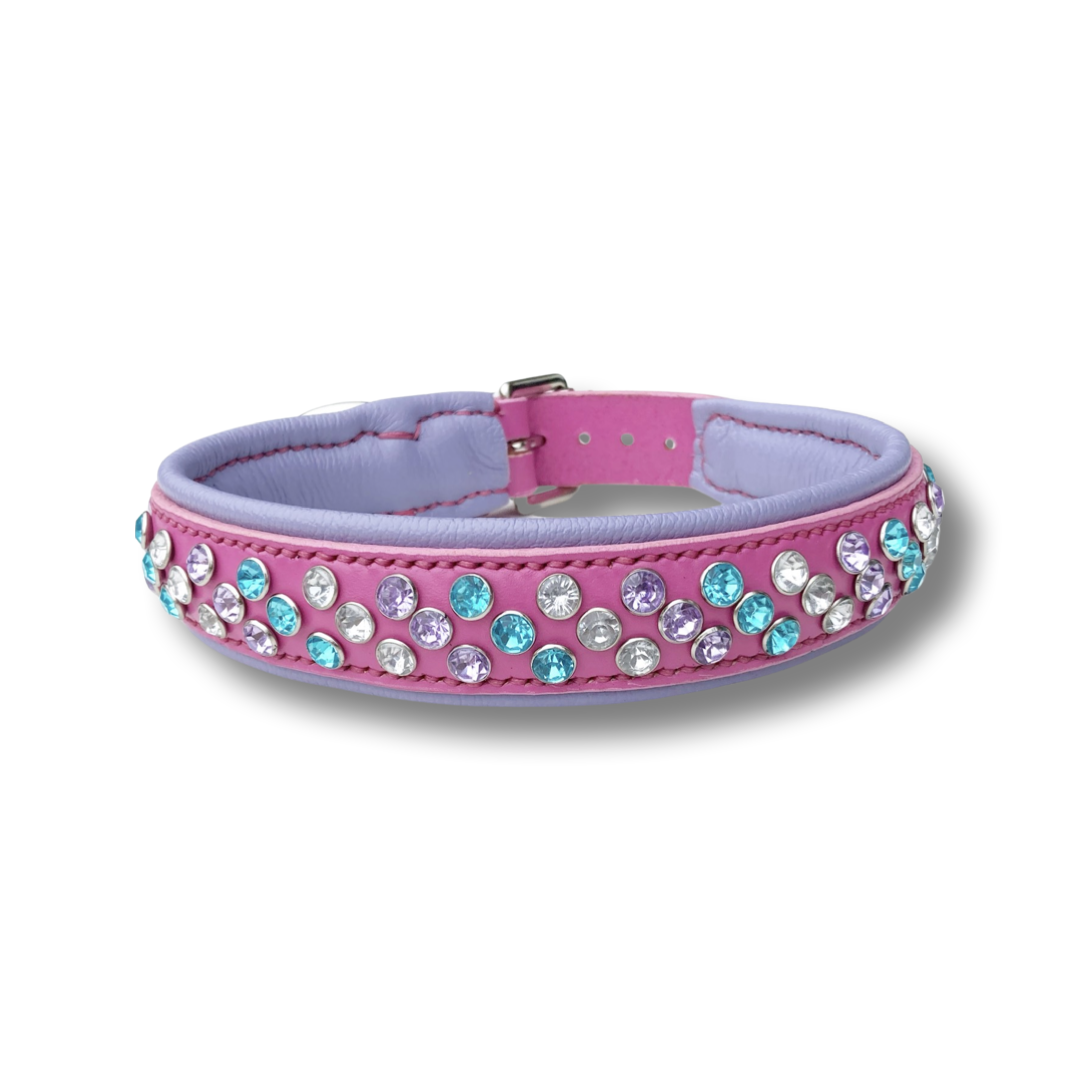 sizes 3-4 are 1 1/4" wide including padding tapered down to a 5/8" buckle